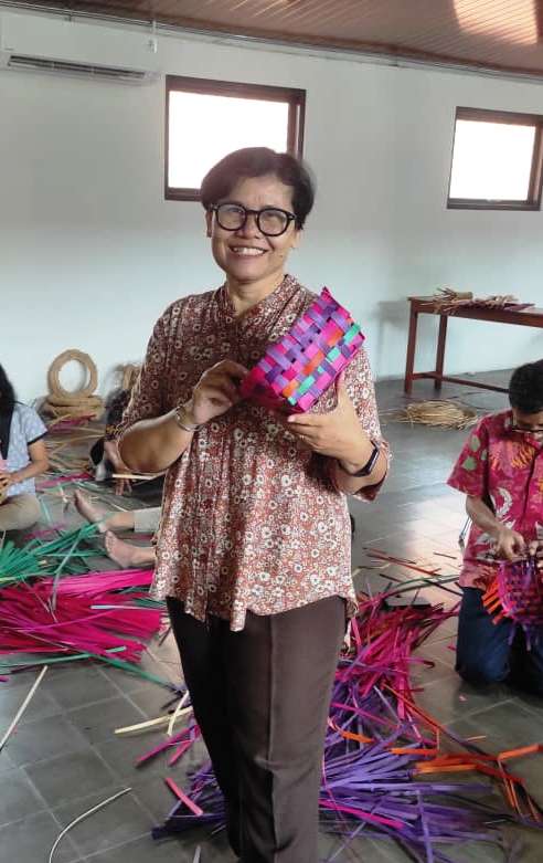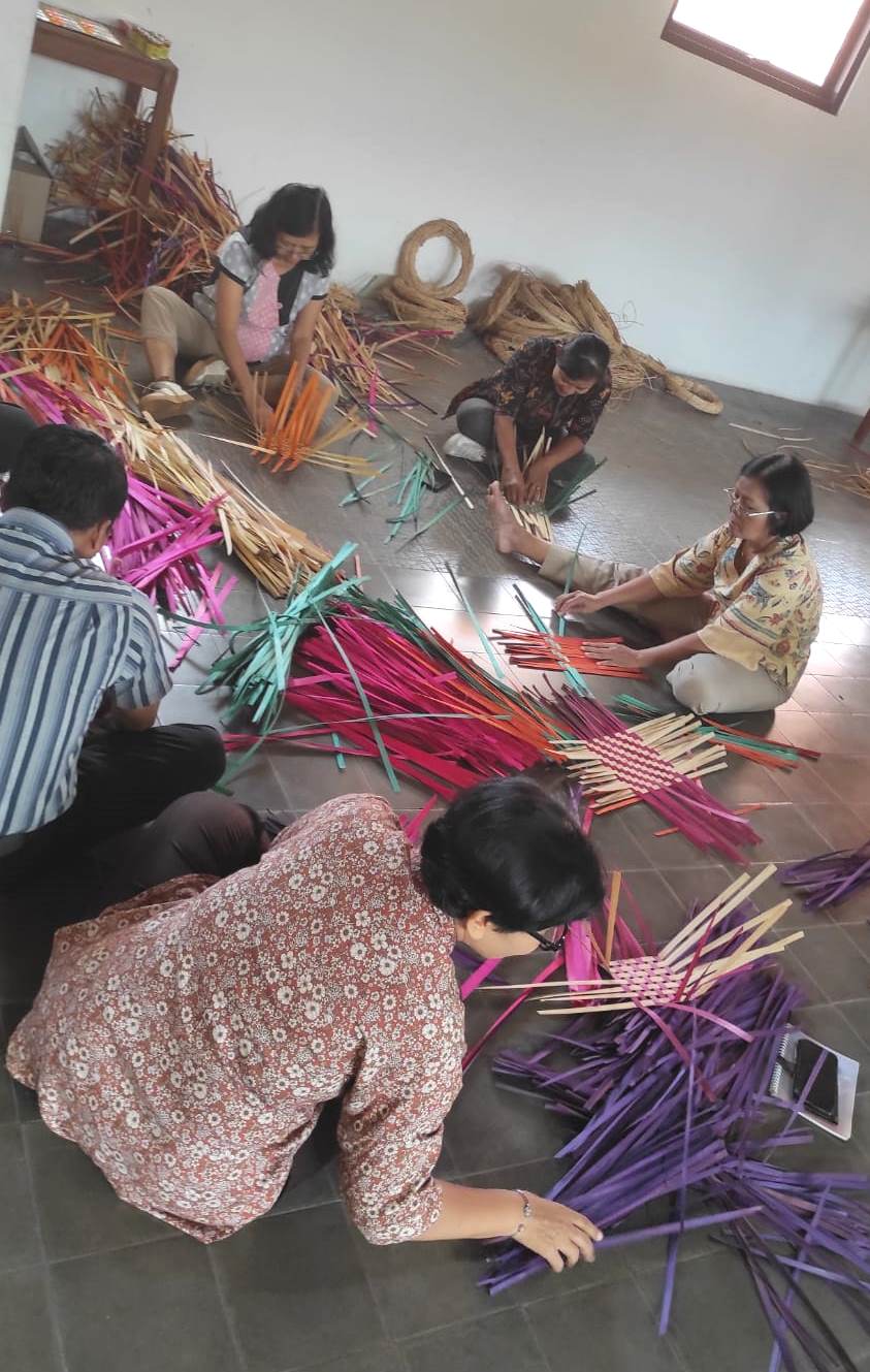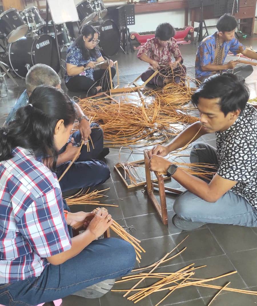 Workshop kali ini menghadirkan Bapak Drs. F.X. Supriyono, M. Ds., widyaiswara ahli madya dari Balai Besar Pengembangan Penjaminan Mutu Pendidikan Vokasi Seni dan Budaya. Beliau adalah seorang yang sangat berpengalaman dalam mendampingi pelatihan-pelatihan kriya anyam di dalam maupun luar negeri.